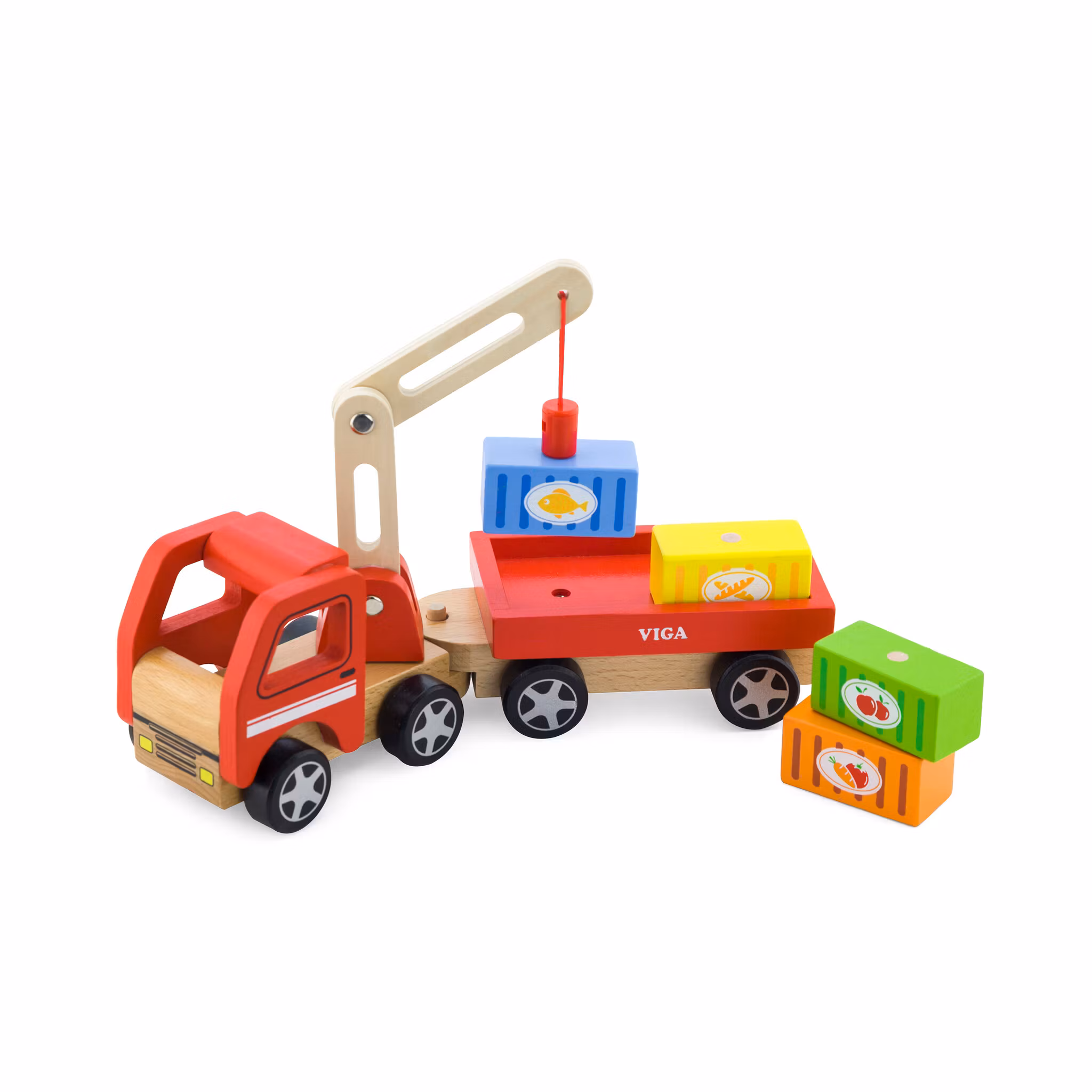 Här kommer en riktigt rolig billeksak i hållbart trä och detta är en vältestad produkt som ger mycket leksug. Lasta varorna fram och tillbaka på din kranbil, kör dem och tippa dem och fortsätt leken ihop med dina övriga fordon. Brum brum! Från VIGA såklart!