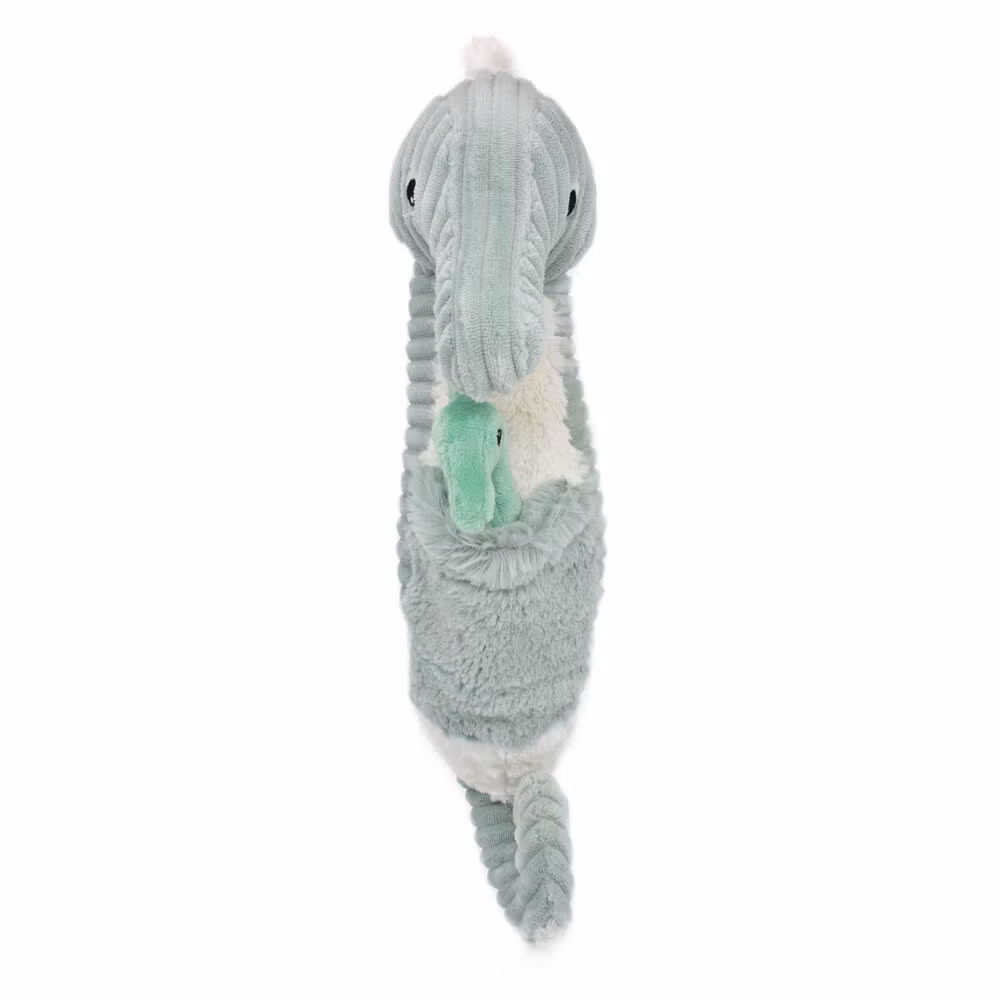 Les deglingos sjöhäst mint med baby - är den perfekta presenten. Den här söta och mjuka sjöhästen med en babysjöhäst i fickan på magen är både gullig och unik. Från födseln Återvunnen fyllning Polyestervaddering/Maskin/kalltvätt Lufttorkning Les deglingos sjöhäst mint med baby är från mamma & baby sortimentet och är tillverkad av bomull och polyester (manchester & plyschtyg). Mjukdjuren är stoppade med återvunnet material (PET-flaskor) och säker för barn från 0 år. Den uppfyller EN71 1-2-3 standard. För att ta hand om den kan du maskintvätta den på låga grader eller handtvätta den och låta den lufttorka. Gör en nyfödd glad och ge bort Les deglingos sjöhäst mint med baby. Den här söta och mjuka sjöhäst gosedjuret är den perfekta presenten till babyshowern, dopet, namngivningen eller kalaset. En vän som kan följa med upp i åldern.