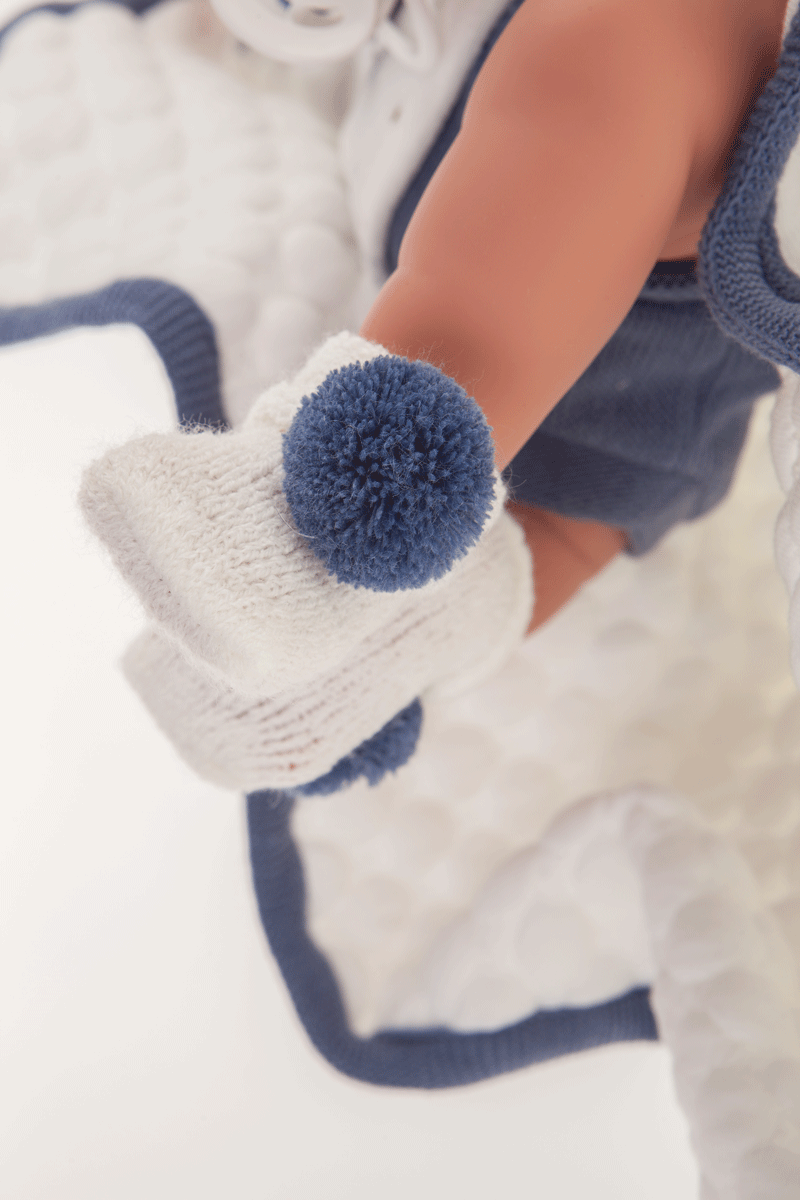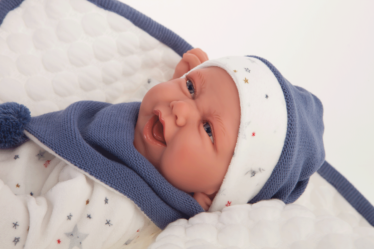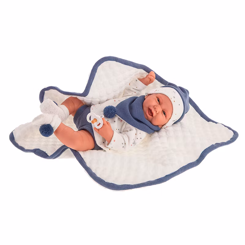 Carlo är en verklighetstrogen och fin docka med söta detaljer och ett glatt ansiktsuttryck. Carlo kommer tillsammans med en filt som matchar hans kläder med blå detaljer. En fin docka att älska, perfekt att ge som storasyster/storebror present när det väntas syskon. Den spanska dockan Carlo har en mjuk kropp, Huvud, armar och ben är av vinyl. Hon kommer tillsammans med kläderna på bilden som består av: