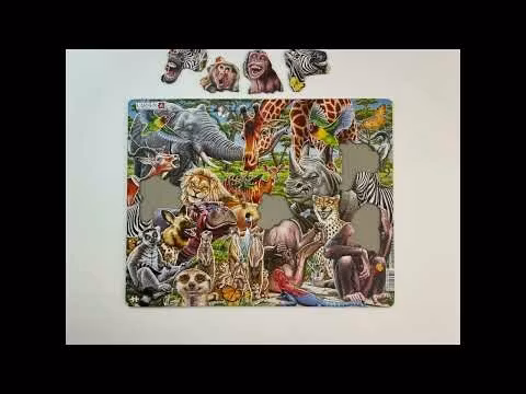 Ett roligt pussel fullt av djur som trivs på varmare breddgrader! Detta 43 bitar pussel från Larsen pussel blir snabbt en favorit hos djurälskaren.