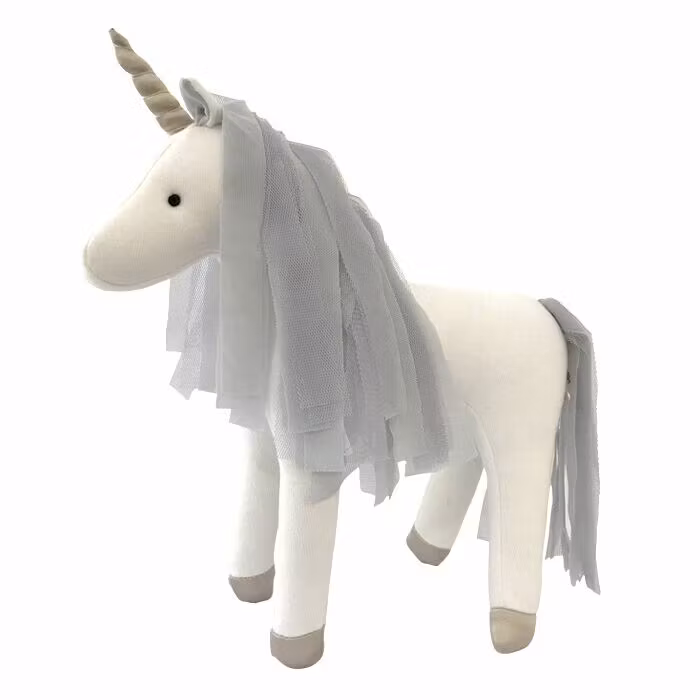 Säg hej till denna söta enhörning med grå man och svans. Låt denna söta lilla häst blir barnets bästa vän. Kamma manen och svansen och gosa med den. Cirka 25 cm.