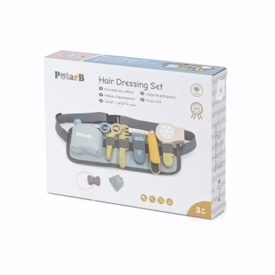Spännande hårfrisörset med tillhörande väska från Viga. Perfekt för barn som älskar kreativt och fantasifullt rollspel, här hittar små frisörer allt de behöver för att klippa, torka och platta hår. I setet ingår en hårtork, en kam, en sax, 2 charmiga hårsnoddar, en rakapparat och en rakhyvel. Allt ligger i en smidig midjeväska som man enkelt kan spänna runt midjan för att lättare kunna arbeta med kunderna. Nu äntligen kan barnen öppna sin egen lilla frisörsalong hemma! Ålder: 3+ Delar: 8